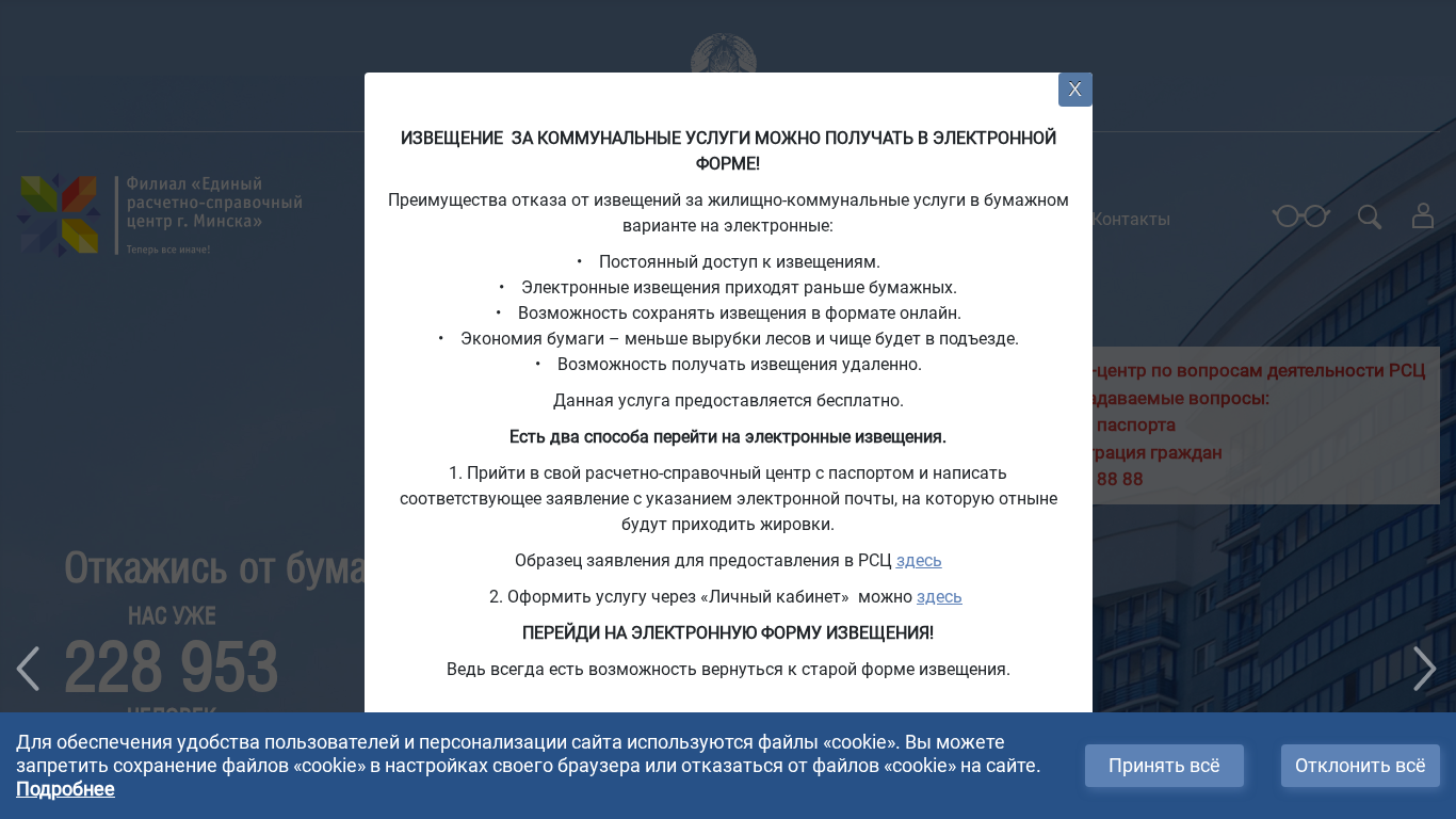 | SEO-описание | Официальный сайт филиала «Единый расчетно-справочный центр г.Минска» коммунального унитарного предприятия «Центр информационных технологий Мингорисполкома», Кон |