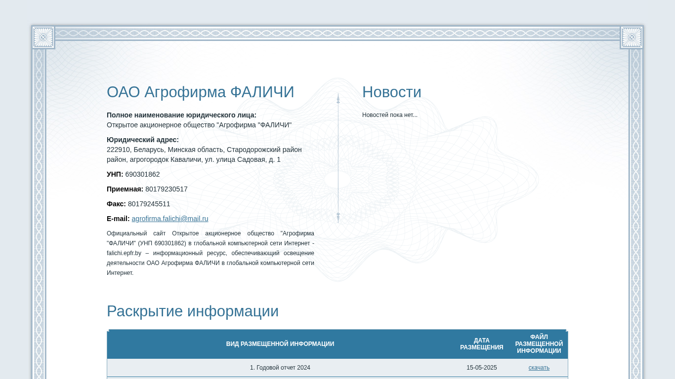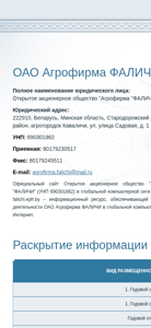 Название / Заголовок | Агрофирма ФАЛИЧИ ОАО |