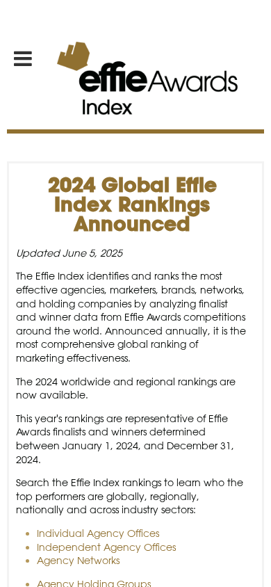 | SEO-лексика | the effie agency informa and index rankings 2024 offices 2025 are global networks holding brands marketers awards warc llc group |