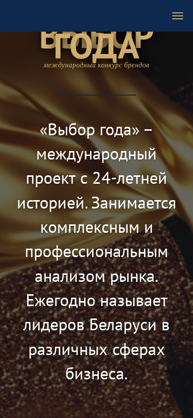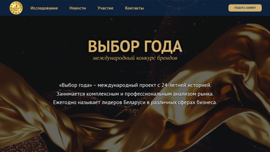 | AI-анализ | This website is for the International Choice of the Year project in Belarus, a 24-year-old initiative focused on comprehensive market analysis. Annually, it identifies leading companies and brands in various business sectors in Belarus. The determination of winners involves a complex methodology, with 40% of the weight given to consumer opinions, 30% to expert juries, 15% to marketing juries, 10% to media juries, and 5% to the organizing committee. Each participant receives a marketing report on the research results compared to competitors, as well as an analysis of recognition, usage, and preference; and a detailed analysis of demographic factors such as gender, age, location, income level, and occupation. The representative sample is selected randomly from Belarusian residents aged 18 to 64. Consumers answer three questions about their awareness, usage |