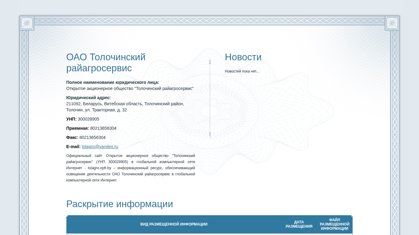 | Название / Заголовок | Толочинский райагросервис ОАО |