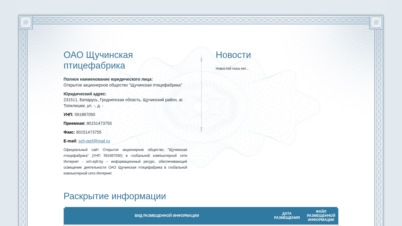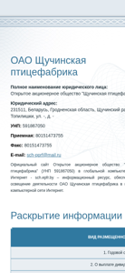Название / Заголовок | Щучинская птицефабрика ОАО |