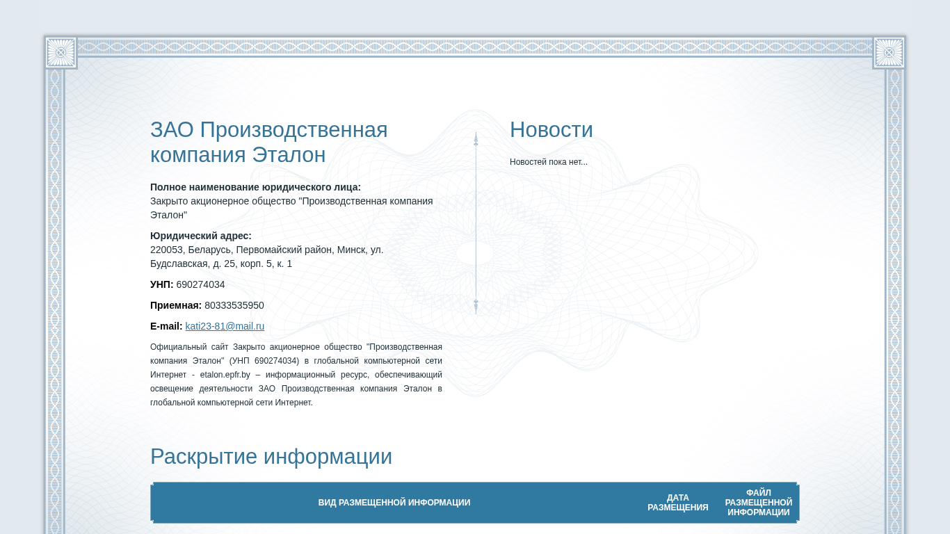 | Название / Заголовок | Производственная компания Эталон ЗАО |