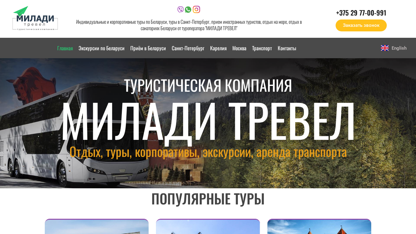 | Название / Заголовок | Туры. путевки, экскурсии МИЛАДИ ТРЕВЕЛ — Заказать экскурсии, туры по Беларуси, Петербург, Москва, Море и другие можно тут |