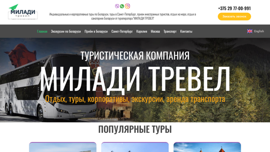 | AI-анализ | The portal Miladi Trevel offers tours, travel packages, and excursions in Belarus, Saint Petersburg, Moscow, and the sea. Visitors can book individual and corporate tours to Belarus, as well as tours to Saint Petersburg, and arrange reception for foreign tourists. The company also offers vacation packages at the seaside and in sanatoriums in Belarus. Miladi Trevel is a tour operator based in Belarus. Popular tours include a visit to Brest-Breastfortress and the Folk Craft Museum "Duduki" with a tasting of homemade vodka. Other tours offered include a tour to the region of Karelia, a tour to Moscow, and a tour to Saint Petersburg with a visit to Peterhof. Miladi Trevel can be contacted at +375 29 77-00-991. |