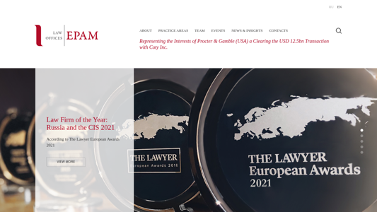 | AI-анализ | language: en  This website, EPAM Law, is an international law firm based in the CIS with offices in Russia, Belarus, and the UAE. The firm provides legal services in various practice areas, including dispute resolution, bankruptcy, defamation, international arbitration and litigation, white collar crime, transactional banking and finance, capital markets, intellectual property, real estate and construction, project finance and public-private partnership, M&A and corporate, regulatory administrative law, competition law, compliance, personal data protection, international trade & customs, tax, privatisation and public sector assets, environmental and technical regulations, industry-specific technology, media and telecommunications, maritime shipping / transport law, insurance, pharmaceuticals and healthcare, energy, private client services, transfer of wealth, family law, employment and migration law, and team events. The firm has received several awards for its legal services and has |
