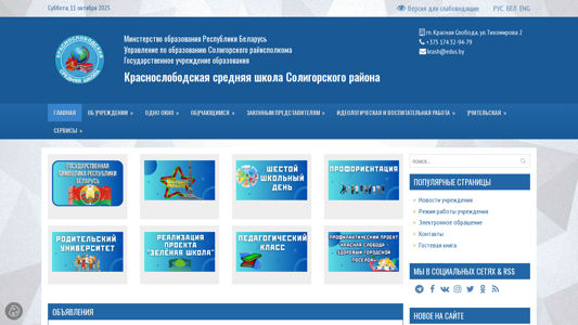 | AI-анализ | The portal Kranslooboda.edus.by is a website for Kransloobodskaya Secondary School in Soligorsky District, Belarus. The school's title and location are indicated in the title and description meta tags, along with information about the Ministry of Education, the district administration, and contact details. The site offers news, information about the school's mission and leadership, paid services, a library, electronic learning tools, and a calendar of events related to the Day of the Orthodox Book. The site also includes normative documents, information about anti-corruption measures, and contact information for the school's history, traditions, and notable graduates. Additional features include an interactive map of the educational network, a guardian council, information about the school bus route, museums, and various educational and career-oriented events. The site is also accessible for visually impaired users and |