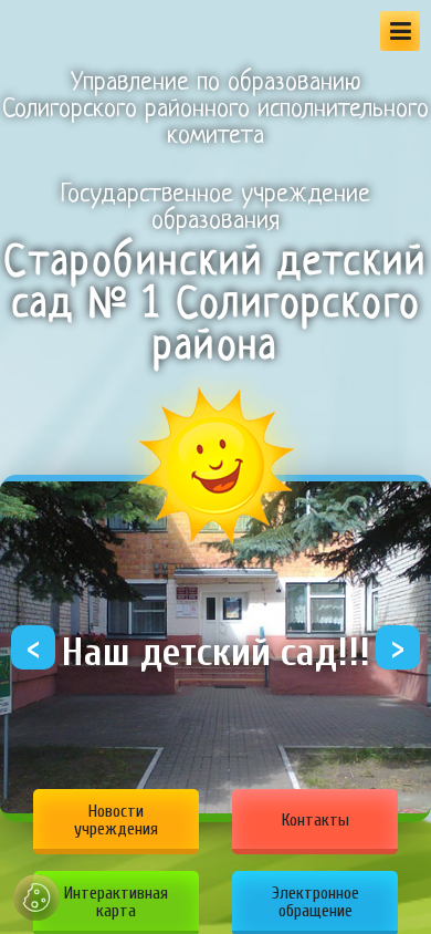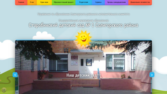 | AI-анализ | The web project "Starobin Childcare Centre No. 1 in Soligorsky District" is an educational institution for preschool children located in Belarus. The website offers information on the institution's administration, staff, educational process, and various projects. Users can find details about the admission process, working hours, and contacts. The site also features interactive maps and documents related to the institution's history, traditions, and achievements. Additionally, there are sections on nutrition, safety, and healthy lifestyle. The domain name is starobin-sad1.edus.by. |