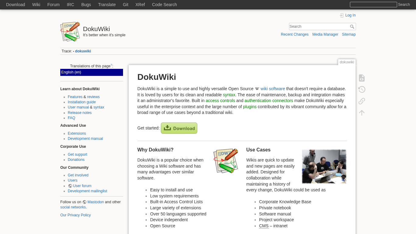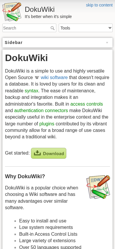 | Canonical URL | https://www.dokuwiki.org/dokuwiki |