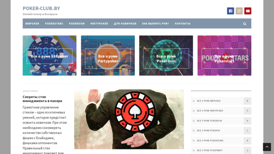 | AI-анализ | --- The website poker-club.by is dedicated to online poker in Belarus. It offers guidance for beginners on how to choose a good poker room and develop a strategy. The site provides information on several popular poker rooms including 888poker, Pokerstars, Pokerdom, and Partypoker. It includes sections on poker schools, stack management, and poker outs. The site also features reviews and bonuses for various poker rooms. The content is available in Belarusian and includes some blog-style articles with comments disabled. The site is partnered with the Belarusian poker club belaruspoker.by, which offers similar content and resources for online poker players. |