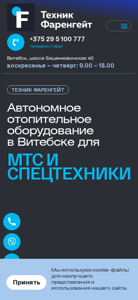 | AI-анализ | --- This online resource, titled "Автономное отопительное оборудование в Витебске | Техник Фаренгейт," is a website dedicated to providing heating equipment solutions in Vitsebsk, Belarus. The company, Technik Farengeyt, offers services including installation, maintenance, and repair of autonomous heating systems for MTS (Mobile Telecommunication Systems) and special machinery. They also sell heating equipment and spare parts. The website includes a catalog of their offerings and contact information, with operating hours on weekends from 9:00 to 18:00 and a phone number +375 29 5 100 777. The website also features a video player and an option to download an MP4 file. The company specializes in high-quality services related to the sale and maintenance of |