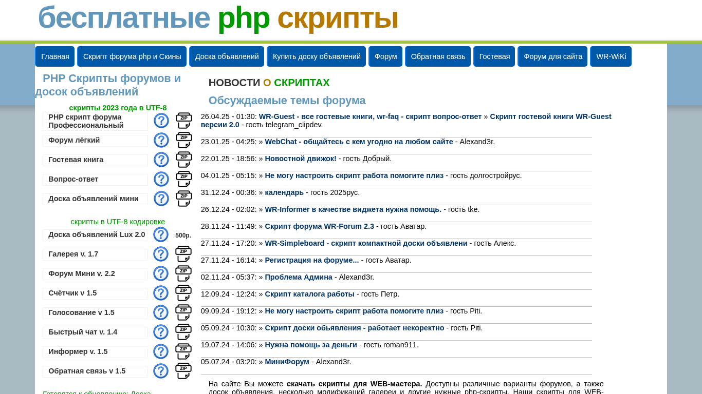 | Ключевые слова | скрипты для сайтов скрипты скрипт доски скрипт доски объявлений форум php скачать скрипты бесплатные скрипты php скрипты php скрипт скачать скрипт форума php php forum фотогалерея каталог знакомств wr script версия скрипта гостевая книга |