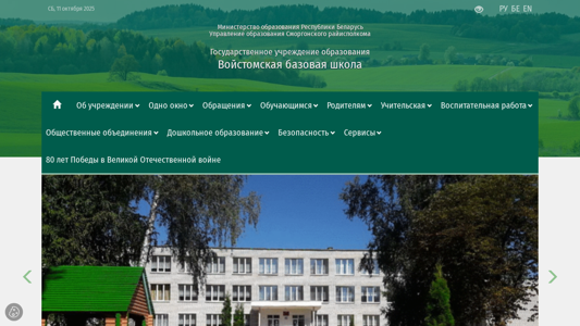 | AI-анализ | --- This online resource belongs to the Voistomskaya Bazovaia Shkola, an educational institution in Smorgon, Belarus. The website provides information about the school, its history, traditions, achievements, and operational hours. Users can find details about the administrative structure, the pedagogical team, the school's policies, and various educational programs. The site includes a catalog of the school's collection, information for parents, and resources for students. Visitors can also access guidelines for enrolling in the first grade and contact information for administrative procedures. Additionally, the website features a section on safety and a calendar of events. The domain is operated under the Ministry of Education of the Republic of Belarus and the Smorgon Regional Executive Committee. |