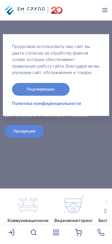 | SEO-описание | Компания ЕМ Групп (ЕвроМобайл) - инжиниринг и поставки беспроводного оборудования и решений на базе LTE, 3G, GSM, NB-IoT, LoRa для транспорта, ИТС, умного города, ЖКХ, энергетики, безопасности, интернета вещей. |