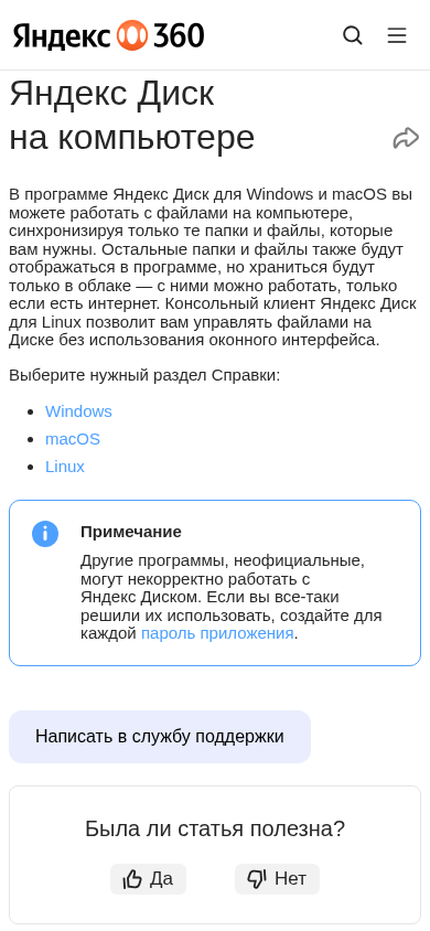 | SEO-описание | В программе Яндекс Диск для Windows и macOS вы можете работать с файлами на компьютере, синхронизируя только те папки и файлы, которые вам нужны. Остальные папк |