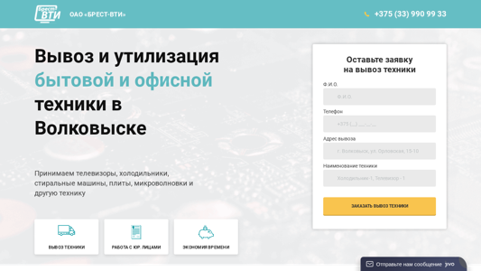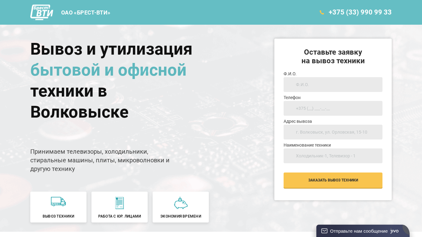 | Название / Заголовок | БРЕСТ-ВТИ - Вывоз и утилизация бытовой техники в г. Волковыск |