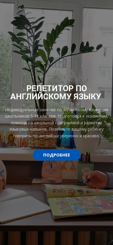 | SEO-описание | Индивидуальные занятия по английскому языку для школьников и взрослых. Помогаю успешно сдать экзамены и улучшить коммуникативные навыки |