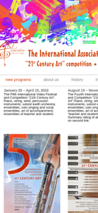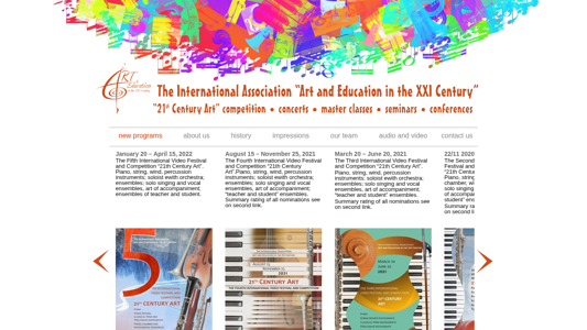 | AI-анализ | This online resource is dedicated to the International Association 'Art of the 21st Century'. It features information about various music competitions, concerts, masterclasses, seminars, and conferences organized by the association. The website provides details about past and upcoming events, focusing on piano, string, wind, and percussion instruments, as well as soloists performing with orchestras, ensembles, and vocal groups. The content includes opportunities for teacher-student ensembles, and the site offers downloadable resources and print versions of competition summaries. The website also mentions past events held in Ukraine and Kiev, with a variety of instruments and ensemble types involved. The domain name for this resource is art21.cc. |