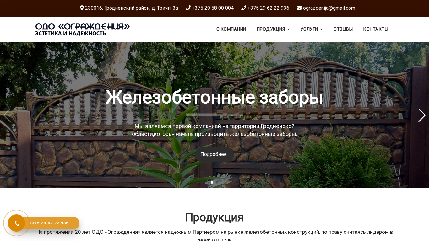 | SEO-описание | Купить железобетонный забор в Гродно с доставкой по всей Беларуси и установкой по низким ценам. Бетонные плиты, столбы и другие изделия. |