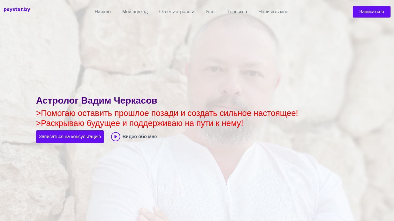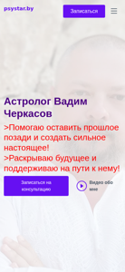 | AI-анализ | The website "Астролог Вадим Черкасов" at psystar.by offers astrology services with a focus on helping people leave the past behind and create a strong present. The website provides answers to questions about one's personality, future, and what actions to take through a harmonious blend of ancient wisdom and modern psychology. Services include online consultations, which are free for the first session, and personalized strategies for achieving one's dream life. Topics covered include personal relationships, self-evaluation, mood and energy, fears and anxieties, and various life stages and challenges. The site also includes a blog and horoscope section. |