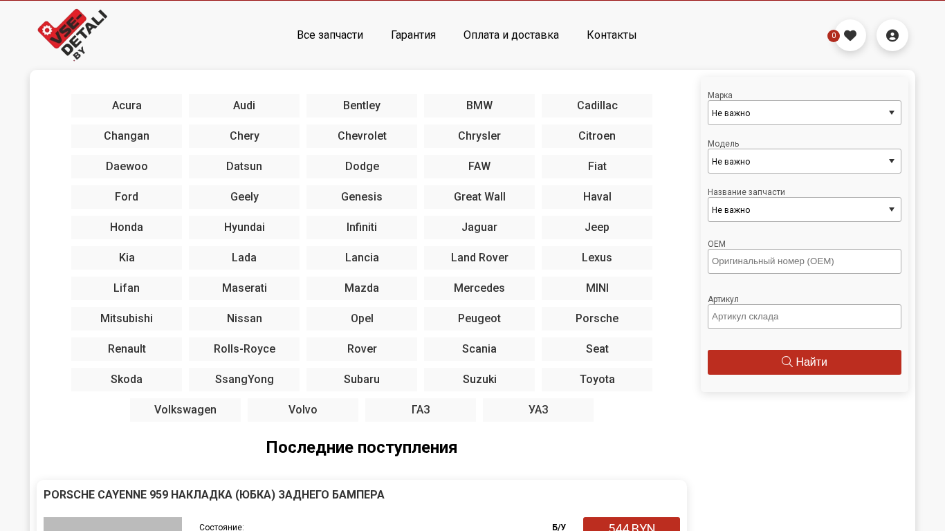 | SEO-описание | Самый полный каталог оригинальных БУ автозапчастей в Беларуси в интернет-магазине Vse-Detali.by. Доставка по всей Беларуси. Лучшие цены. Гарантия. |