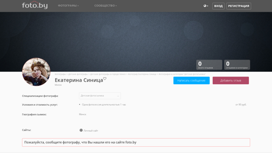 | AI-анализ | The website is a photographer's portfolio under the name "Екатерина Синица" based in Minsk, Belarus. The main focus of the website is on children photography, as indicated by the title and the description, which also mentions other types of photography such as love story and animal photography. The photographer's name and location are repeated several times in the top_words, further emphasizing the main subject of the website. The keywords and unp data suggest that the website is part of a larger photography community or catalog, with options for users to leave reviews, browse other photographers' portfolios, and access various services related to photography. The website also includes a blog and an FAQ section. The domain name includes the word "foto" and is registered under the .BY top-level domain. |