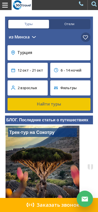 | SEO-описание | Туры и отдых 2025 от 360Travel. Услуги турфирмы и турагентства в Минске. ОАЭ и Мальдивы наш ТОП. Высокий рейтинг среди турфирм и туроператоров. Индивидуальные туры, раннее бронирование. Удобный онлайн сервис по подбору тура из Минска! |