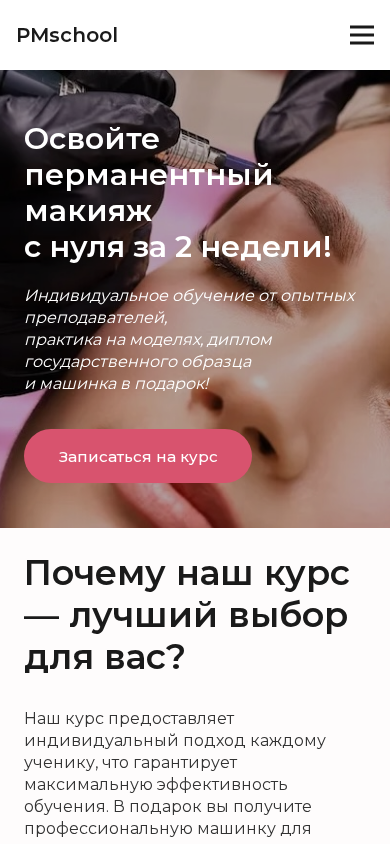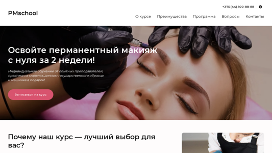 | AI-анализ | --- The website is for a permanent makeup school in Minsk, Belarus. It offers individual courses on permanent makeup techniques for eyebrows, lips, and interbrow spaces. Students receive a state diploma, a machine as a gift, and a portfolio of eight works upon completion. The school provides personalized training from experienced teachers, practice on models, and a full suite of juridical support for opening and growing a business. The course costs 1200 rubles and covers color theory, creating and transferring designs, and social media marketing. Students will learn how to choose and mix pigments, create accurate sketches, and effectively promote their services. The website also offers practice on eight models and the creation of a finished portfolio. |