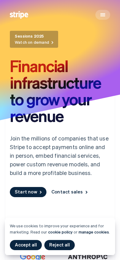| Название / Заголовок | Stripe | Financial Infrastructure to Grow Your Revenue |