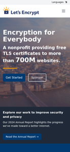 | AI-анализ | The portal, Let's Encrypt, is a nonprofit organization providing free TLS certificates for websites to enable HTTPS encryption and create a more secure internet. The organization is brought to you by the Internet Security Research Group (ISRG) and has over 700 million websites using its certificates. To get a certificate, users must demonstrate control over the domain. The portal offers documentation, a blog, and a get help section for those seeking assistance. The site is available in multiple languages and includes information about sponsors, policies, and legal matters. The Let's Encrypt community forum, which has been in operation for over a decade, provides support for users and keeps the organization in touch with the community. The portal also publishes annual reports and maintains a repository service, statistics, and contact information for those interested in careers or other forms of involvement. |
