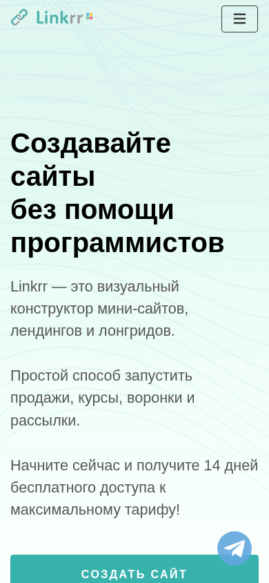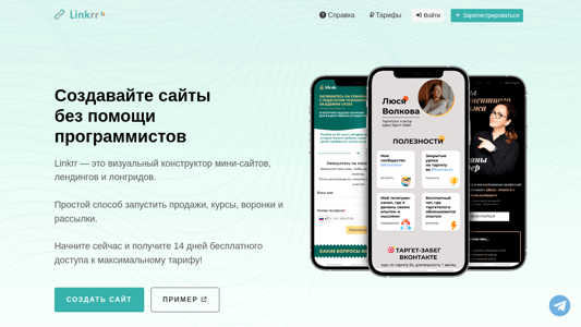 | AI-анализ | The website Linkrr is a visual constructor for creating mini-sites, landing pages, and long-forms without the need for programming skills. Users can create a site by selecting from pre-made blocks in the constructor, connecting various services, and attaching their own domain. The site is ready once these steps are completed. The platform offers over 30 pre-made blocks, the ability to add custom blocks with code, and options for multiple pages and domains. SSL certificates, SEO and OpenGraph settings, and club access with API are provided. Users can accept payments through various services and receive notifications of new orders and payments via Telegram. A built-in CRM allows for managing orders. The website also includes a form constructor, automation of actions on events, webhooks, URL parameter and tag forwarding, link shortening, and pixel analytics with options for external analytics integration. The platform hosts over 18, |
