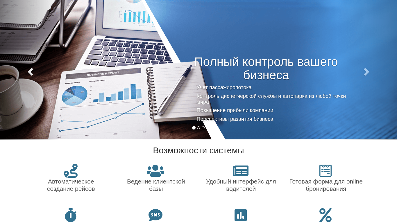 | AI-анализ | This website, titled "Автоматизация пассажирских перевозок | BusPro," offers a full control solution for passenger transportation businesses. Key features include passenger flow tracking, control of dispatcher services and fleets from anywhere globally, increased company revenue, business development prospects, comprehensive dispatcher service automation, quick request processing, all information on one screen, short learning curve, improved client service with SMS notifications, and a mobile application for ticket booking. The system provides a comprehensive set of reports and records for company leaders, detailing who accepted and canceled requests, operator and driver reports, passenger flow graphs, growth in passenger traffic, best customer service, loyalty programs, and mobile application usage. Exceptions to manual labor include automated route creation and SMS notifications. A user-friendly interface is provided for drivers, and quick ticket booking is available online or through the mobile application. For inquiries |