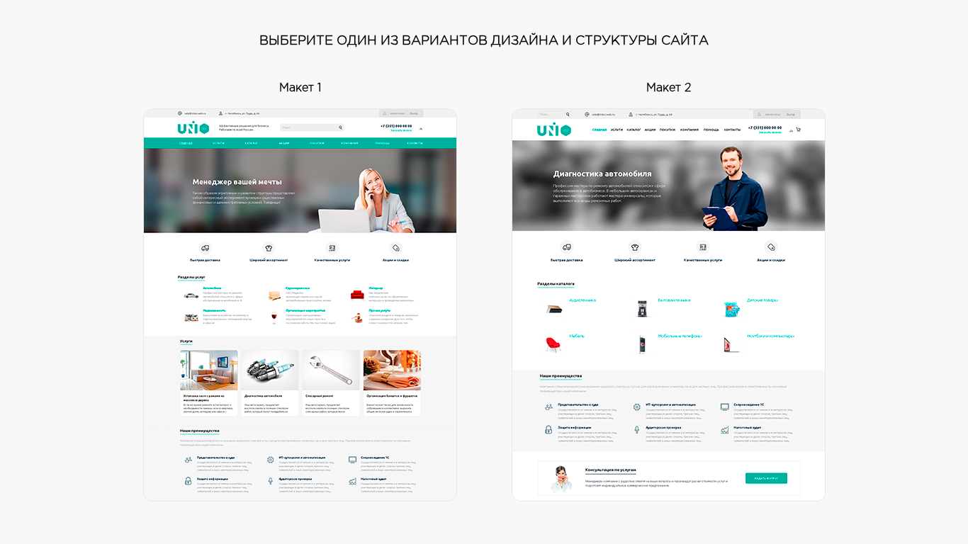 | Название / Заголовок | Выберите один из вариантов дизайна и структуры сайта |