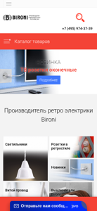 --- This online resource is a Russian producer of retroelectricity and offers retro wiring and electrical components at optimum prices. The website, titled "BIRONI," emphasizes high-quality production and delivery across Russia. The main sections include a catalog, collection, gallery, and FAQ, among others. The product range includes various types of switches, sockets, distribution boxes, and wiring, all in retro styles. The website also offers a new series of double television sockets and a range of vintage-style lamps, as well as information on the producer, Bironi.