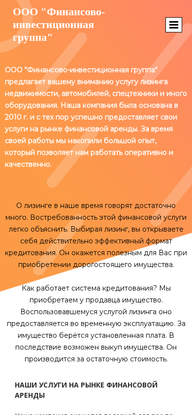 | SEO-лексика | вас нас лизинга финансовой услуги аренды наши специалисты ооо финансово-инвестиционная группа условия компания рынке время нам лизинг имущества вам главная |