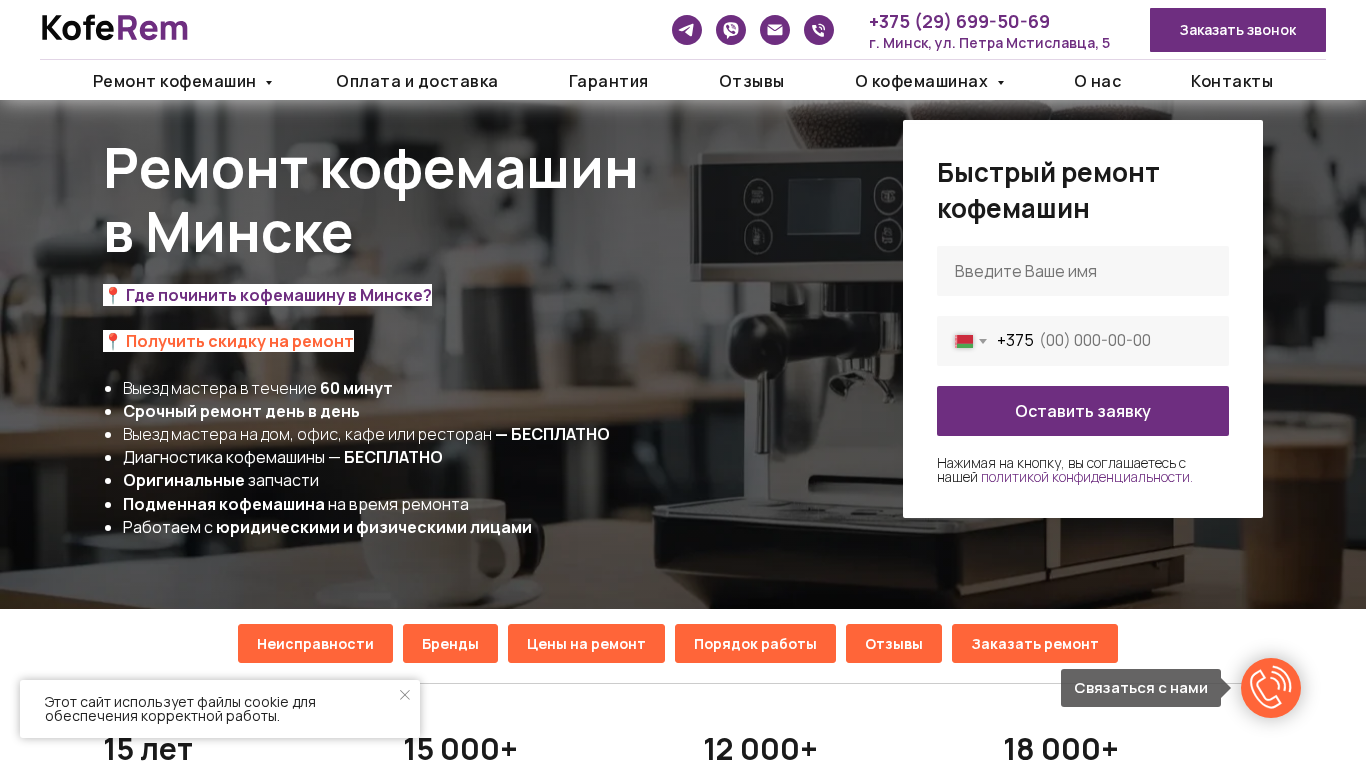 | Название / Заголовок | Ремонт кофемашин и кофеварок в Минске: на дому и в сервисном центре |