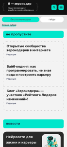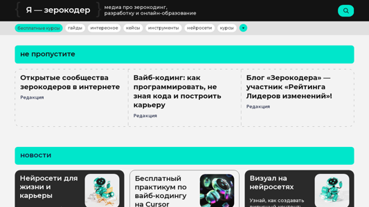 | SEO-описание | Первое медиа о создании IT-решений без кода на русском языке от университета «Зерокодер». Создание приложений и сайтов без кода - всё о no-code и low-code конструкторах. Уроки и курсы по обучению разработке мобильных приложений, сайтов и использовании нейросетей. Отзывы, примеры работ и кейсы |