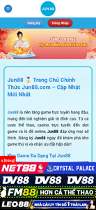 | AI-анализ | --- The web project Jun88 is a leading online gaming platform offering various entertaining games. Register for Jun88 to experience its user-friendly, secure, and fast withdrawal interface. Jun88 provides a wide range of games, from sports betting to online casino and slot games. Sports enthusiasts can bet on thousands of games daily, including popular leagues like Asian and European ones. Live streaming and scoring updates offer an immersive sports betting experience. Esports fans can enjoy real-time betting on popular games like League of Legends, Dota 2, CS:GO, and Valorant, making every moment count. For casino enthusiasts, Jun88 offers classic games like Baccarat, Roulette, and Sicbo, with live streaming available 24/7. Slot game enthusiasts can try their luck at jackpots with every spin. J |