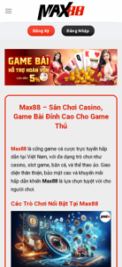 | AI-анализ | The portal Max88 – Sân Chooi Casino, Game Bai Dihn Cao Cho Game Thu is a Vietnamese online casino and gambling platform offering various games such as casino, slot games, bingo, and sports betting. With a user-friendly interface, high security, and attractive promotions, Max88 is a great choice for gamers. Notable Games on Max88 Max88 offers an exceptional casino experience with popular games like baccarat, blackjack, roulette, and poker. All games feature attractive graphics and easy-to-use interfaces, providing an authentic casino feel right from home. Slot Games Max88's diverse selection of slot games offers numerous engaging themes and high payout rates. For fans of this game genre, Max88 will not disappoint. With captivating graphics and exciting sound effects, these games offer enjoyable and relaxing experiences. Live Casino Max |