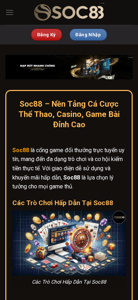 SEO-описание | Khám phá Soc88- Nền tảng cá cược thể thao, casino và game bài đỉnh cao. Tham gia ngay để trải nghiệm các trò chơi đa dạng, tỷ lệ cược hấp dẫn tại Soc88. |