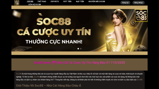 | AI-анализ | The website Soc88 is a leading online gambling platform in Vietnam and the Asian region, renowned for its secure, fair, and professional gaming environment. Established years ago, Soc88 quickly gained trust from players due to its diverse range of gaming products, top-notch security system, and 24/7 customer service. This article explores the key features, games, and special services of Soc88. Introduction to Soc88 – The Leading Asian Gambling Hub Soc88 is a well-known online gambling platform in Asia, offering a wide variety of games from sports betting, live casino, slots, and more. With a legitimate license from PAGCOR, Soc88 guarantees a safe and honest gaming experience. The Origin and Growth of Soc88 Founded several years ago, Soc88 has continuously developed and improved its services. It quickly dominated the |