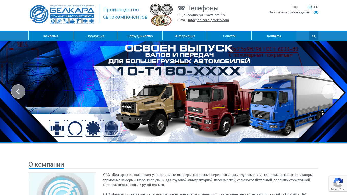 SEO-описание | ОАО “Белкард” - крупнейший производитель автомобильных компонентов для автомобилей всех типов и модификаций. |
