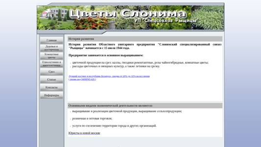 | SEO-лексика | articl слонимский рыщицы спецсовхоз content main menu комнатные цветы срез история развития цветочной продукции беларусь выращивание back главная деревья кустарники |