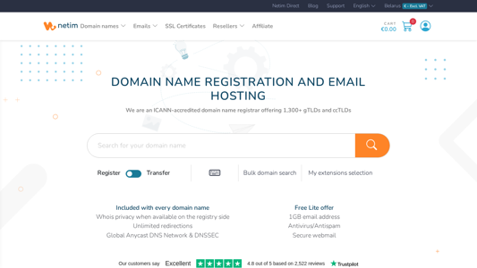 | AI-анализ | The website, Netim, is a domain name registration and email hosting service provider. It offers access to over 1,300 top-level domains (TLDs) at competitive prices, including 450+ country-code TLDs. Netim also provides email solutions and SSL & HTTPS certificates. Users can register or transfer domain names, and take advantage of special offers and discounts. The website offers various tools such as Whois IDN converter, ZoneCheck, and Lite hosting plan, which includes a free email address with every domain name. Netim provides brand protection services and options, and supports multiple languages and currencies. The website's API allows for automation of various actions, and it integrates with popular hosting and billing software such as Blesta, ClientExec, HostBill, WHMCS, and WISECP. |