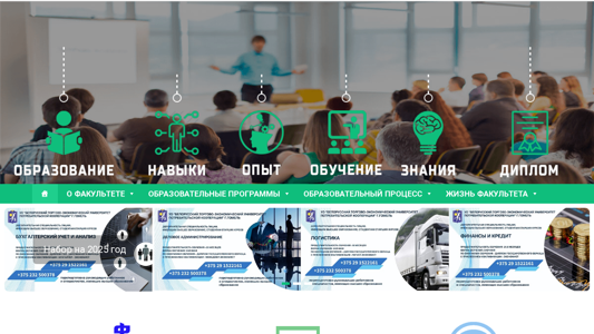 | AI-анализ | This website is for ФПКиП (Fakultet Povyshennia Kvalifikacii i Perepodgotovki), the Faculty of Advanced Training and Retraining in Belarus. The title and description suggest it is an educational institution focusing on postgraduate training and professional development for individuals and organizations with a business and economic background. Keywords include "qualifications," "elevation," "retraining," "specialists," "courses," and "2025." Top words are "qualifications," "elevation," "retraining," "specialists," and "courses," with "2025" appearing frequently. The website offers programs for higher education graduates, as well as training for managers, specialists, and others with completed higher education. There are mentions of educational programs, scientific research, and various certificates. The site also offers distance learning options and |