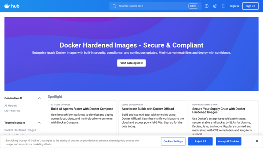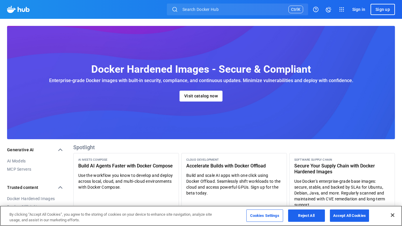 | AI-анализ | The portal hub.docker.com is the world's largest container registry where developers and open source contributors can find, use, and share their Docker container images. It provides a platform to build, push, and pull container images with various tools and features such as Docker Compose, Docker Offload, Docker Suite, and Docker Hardened Images. The website offers secure and compliant enterprise-grade Docker images, official images, verified publisher images, and sponsored open-source categories. It also features content on networking, security, languages & frameworks, integration & delivery, message queues, API management, Internet of things, machine learning & AI, developer tools, data science, web servers, operating systems, content management system, databases & storage, monitoring & observability, web analytics, and spotlight AI meets Compose. The website includes documentation, forums, and contact support. It also features D |