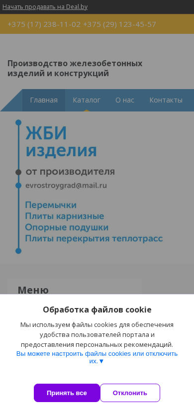 | SEO-описание | Производство ЖБИ изделий в Минске. Осуществляем производство плит железобетонных, ступеней железобетонных, проступи накладные, плиты карнизные, плиты парапетные, опорные подушки с доставкой. |