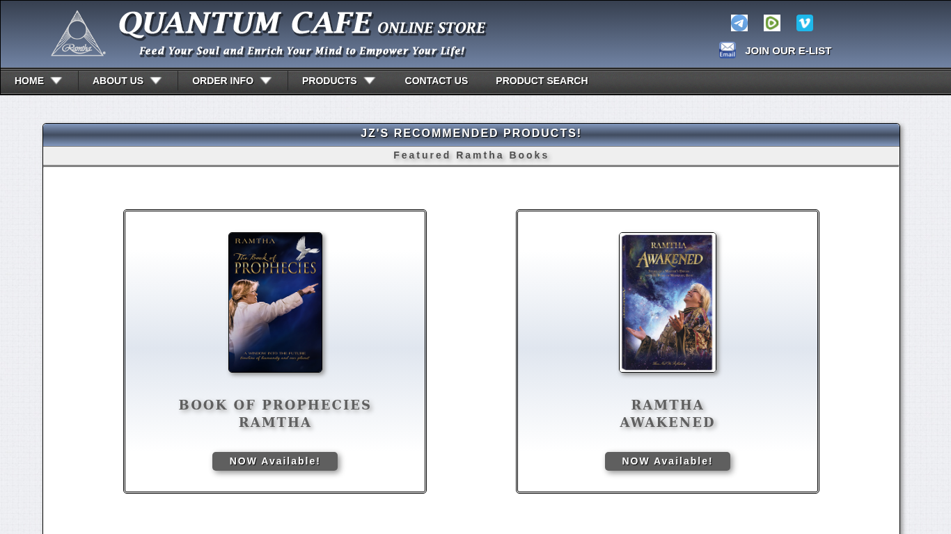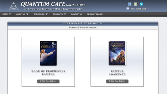 | SEO-описание | Feed your soul and enrich your mind with knowledge that empowers your life! The Quantum Cafe Online Store is your one-stop destination to the greatest books, DVDs, and CDs on quantum physics and the latent power of your brain, the latest discoveries of science on the mind, and our yet to be fully discovered human potential. |