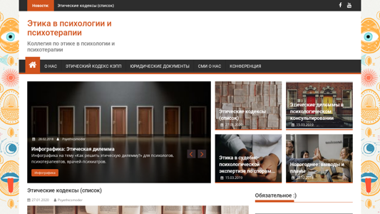 | AI-анализ | The website is a community for psychologists and psychotherapists focused on the development of a universal ethical code. The site provides articles and infographics on ethical dilemmas, codes, and related issues in psychology and psychotherapy. Topics include child custody disputes, ethical problems in consulting, and ethics in forensic psychology. The site also features interviews, roundtable discussions, and legal documents related to ethical issues. The content is primarily in Russian with some English translations. |