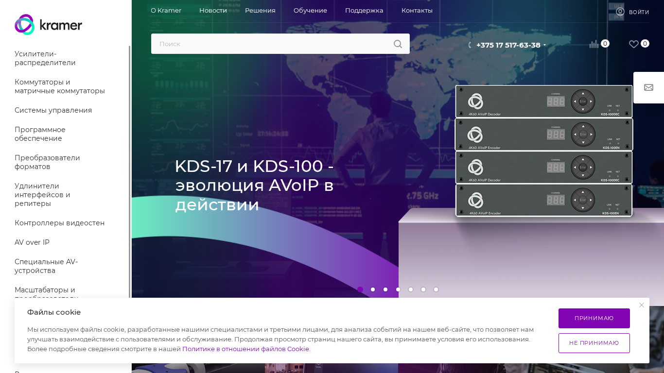 | AI-анализ | --- This online resource is the official website of Kramer, a Belarusian company specializing in the production of professional audio-video equipment for signal transmission, conversion, and distribution. The website offers a catalog of various products including amplifiers, commutators, control systems, software, converters, interface extenders, repeaters, video wall controllers, specialized AV equipment, scalers, and mounting solutions. Additionally, it provides information on installer solutions, cabling, and related tools. The site features news, vacancies, contacts, training opportunities, and a support section. The domain is registered in Belarus, with a physical address in the town of Ratomka. Social media links to Vkontakte, Telegram, YouTube, and Rutube are also provided. The site is available in both Belarusian and English languages. |